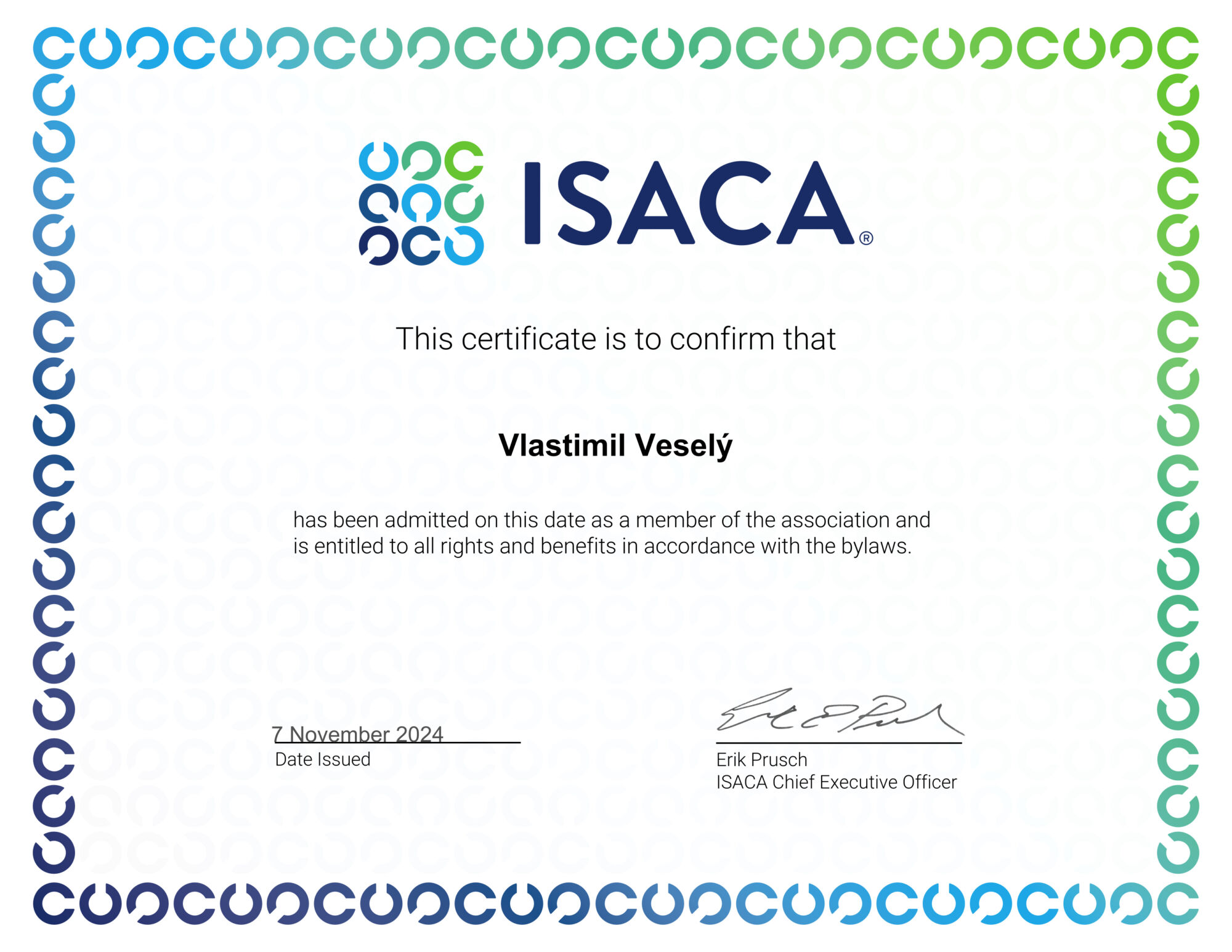 V roce 2024 jsme jako první v ČR získali certifikaci ISO 42001 - Systém řízení umělé inteligence, který úzce souvisí s kybernetickou a informační bezpečností. Zároveň Mgr. Vlastimil Veselý v roce 2025 absolvoval certifikaci "Auditor kybernetické bezpečnosti".